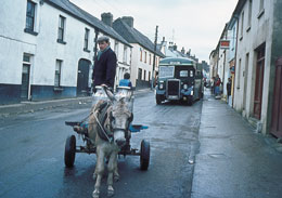 On 1st October 1953, the 39-seater Tiger P347 (ZO 6857) entered service at Ballina Garage, working for several years on the Louisburgh route. It then spent some time in Donegal, later migrating to Athlone, where it last worked stage services in 1967. This bus next went to Drumcar in Co. Louth where it served as school transport, being finally withdrawn in 1980. The following year it came into the Transport Museum collection where it began yet another existence, its career as an important exhibit being punctuated by several film roles. So far, P347 has chalked up more than a dozen film appearances, including The Country Girls, Eagles and Trumpets and, most recently, Circle of Friends.